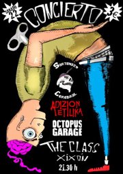 Concierto en la sala The Class de Gijón el sábado 22 de septiembre con los siguientes grupos tocando en directo: Sartenazo Cerebral, Adizión Etílika y Octopus Garage. Los conciertos comenzarán a partir de las 21:30h. y la entrada tiene un precio de tan sólo 3€.
